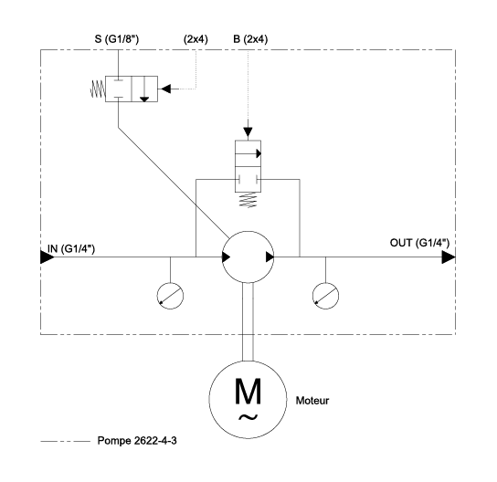 Die Pumpe ist mit einem Spülblock (separat erhältlich) mit 2 pneumatischen Ventilen von POMTAVA ausgestattet. Das erste Ventil übernimmt die Bypass-Funktion der Pumpe, während das zweite Ventil die Zufuhr des Spülmittels steuert und in direkter Verbindung mit den Pumpenachsen steht.