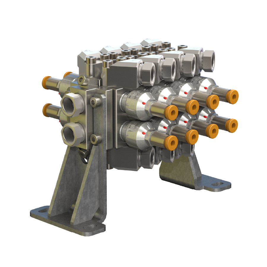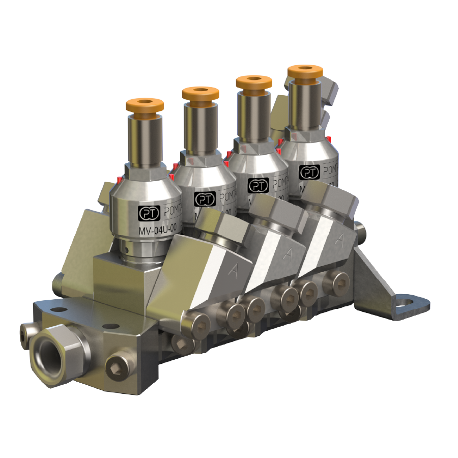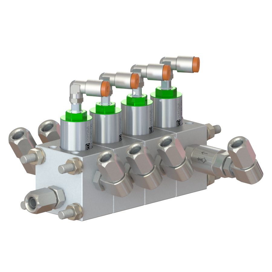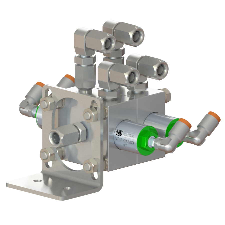 Nous avons aussi développé des systèmes de bypass intégrés permettant non seulement le court-circuitage de la pompe, mais améliorant aussi grandement le rinçage de celle-ci, avec notamment des options de rinçage des axes sur certains modèles.